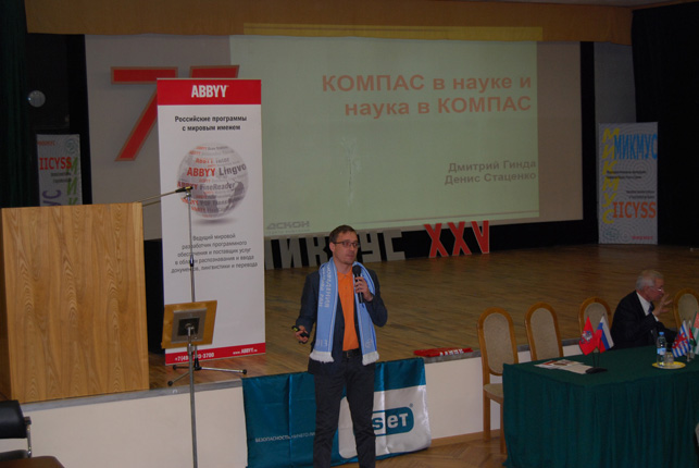 После неудачной фотосессии было проведено традиционное пленарное заседание, в рамках которого выступили и представители компании АСКОН – одного из спонсоров МИКМУС-2013.