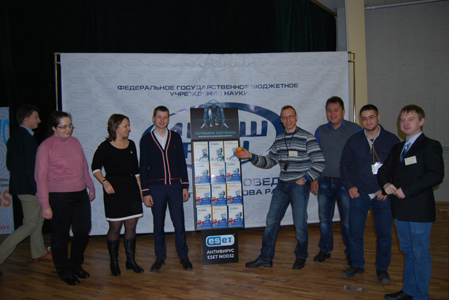 Да-да, мы тоже сначала подумали, что подарок от компании ESET, предназначенный для Дипломантов, взял Константин. И не ошиблись. Он хотел ознакомиться с преимуществами нового антивируса NOD32 перед началом регистрации, но не успел. А после регистрации полутора сотен человек у него не поднимались уже обе руки. Поэтому коробку с ПО из левого кармана пиджака доставали добрые люди, которые пришли на помощь в обеденный перерыв. Что там говорить, регистрация участников – самый тяжёлый в физическом плане этап конференции. Но не волнуйтесь за здоровье Константина – дееспособность рук к первому секционному заседанию была полностью восстановлена.